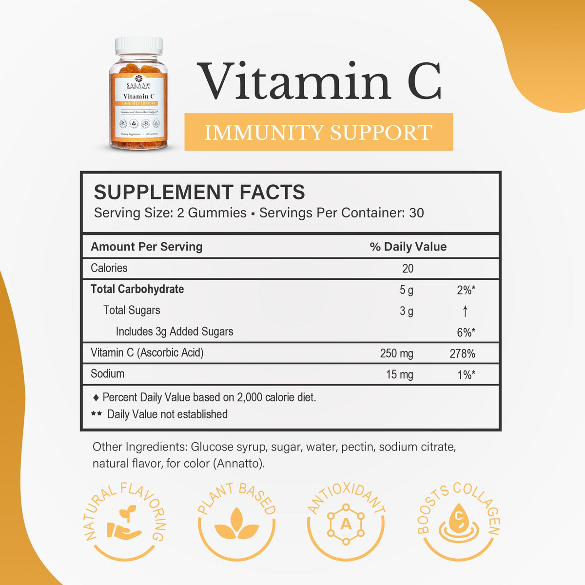 Halal Vitamin C Gummies: Immune Support – Halal, Kosher, Vegetarian, Non-GMO, Gluten, Dairy, & Nut-Free (60 Count)